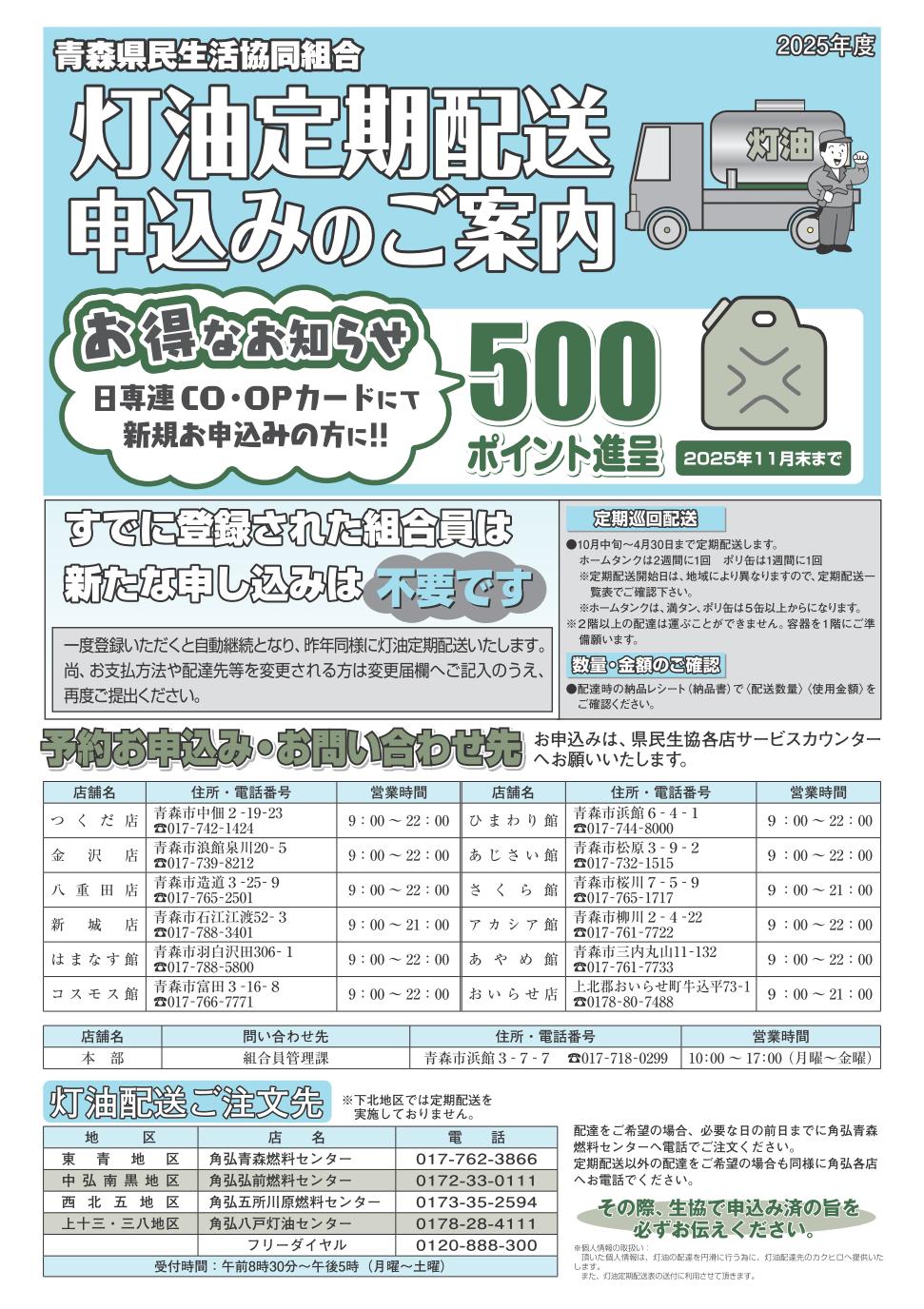 | 県民生協灯油価格とお申し込みのご案内 |